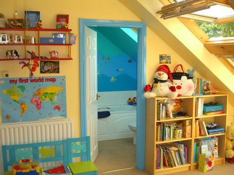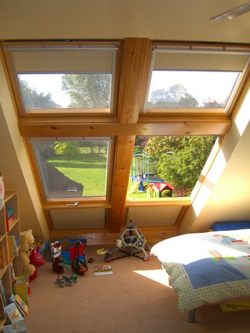 A loft conversion in Burton salmon showing a alternative to dormers and in our opinion giving a lot better effect . As you can see every bit of the floor is being used in this loft and by using top hung velux windows when open head room is not compromised .